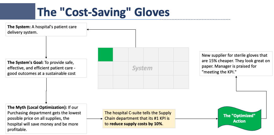 When we optimize one part in isolation (Supply Chain), we often de-optimize the whole (Patient Care). This is called Local Optimization. It is the enemy of system health.